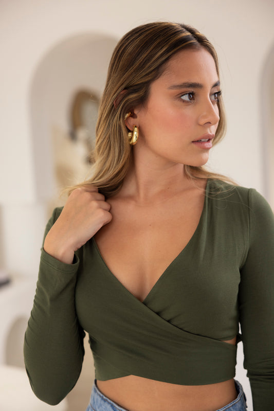 Top Cruzado Manga Larga Olive