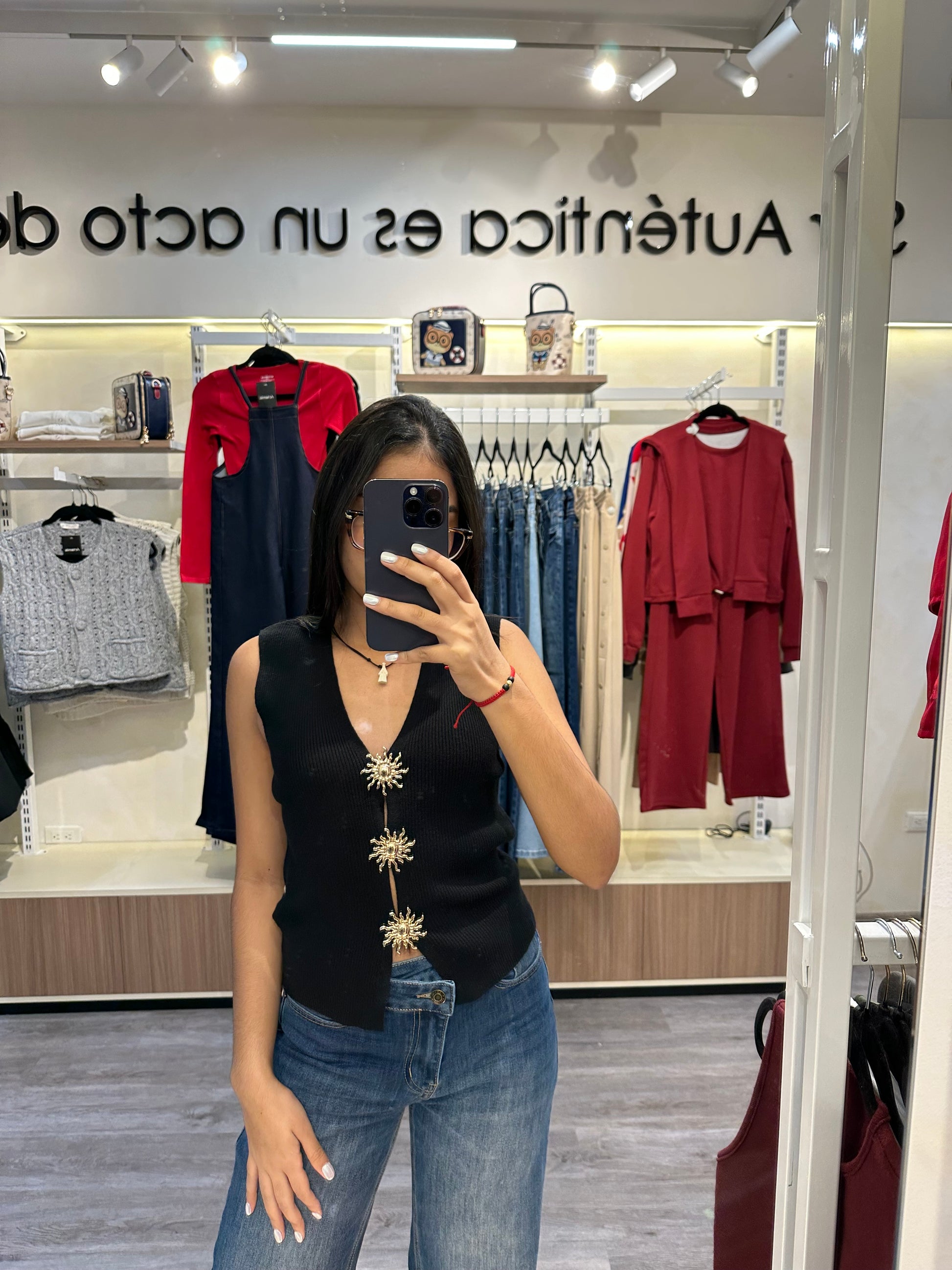 Descripción: Chaleco de tela acanalada con botones dorados de soles.